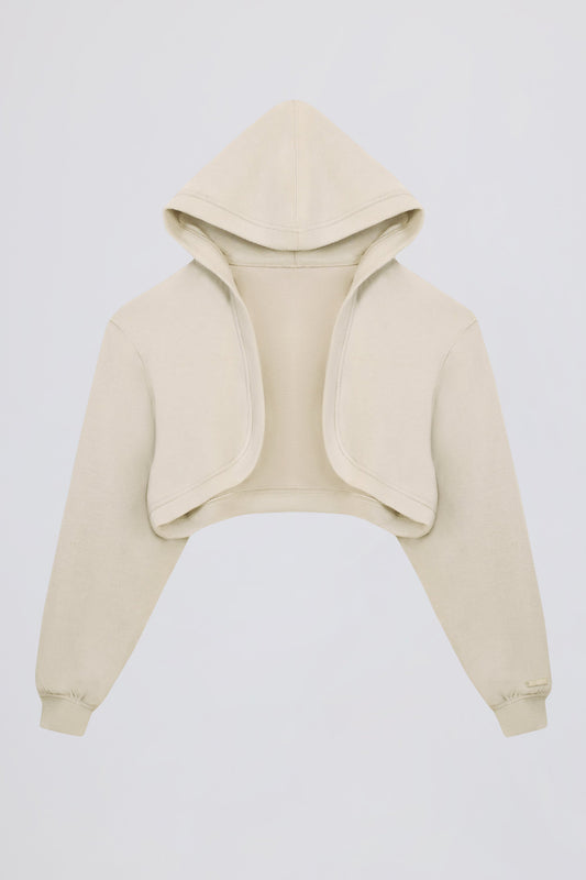 • Brushed Jersey Hooded Cropped Shrug in Ecru