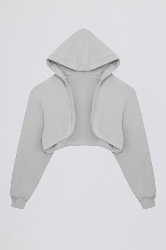• Brushed Jersey Hooded Cropped Shrug in Fog Grey