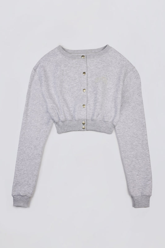 • Button-Up Cropped Cardigan in Grey Marl