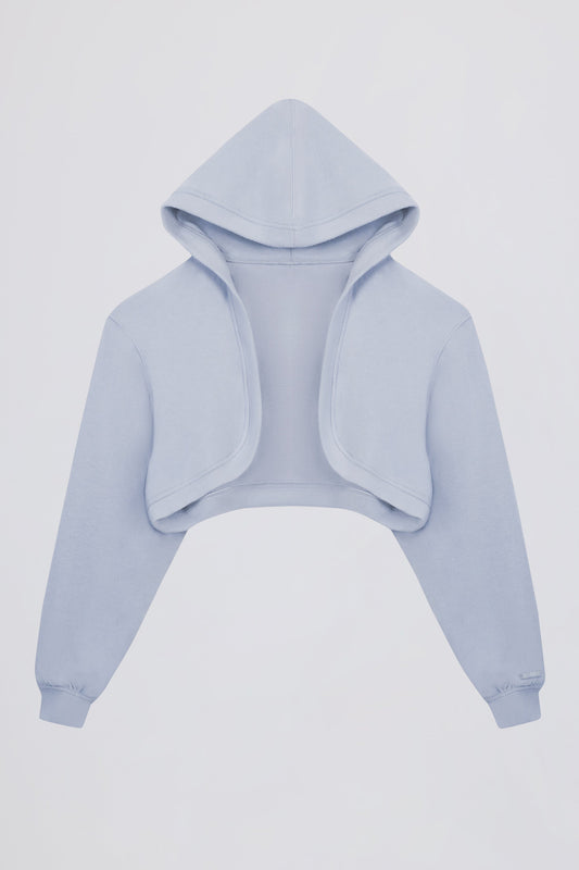 • Brushed Jersey Hooded Cropped Shrug in Soft Blue