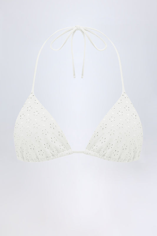 Broderie Anglaise Triangle Bikini Top in Powder Blue