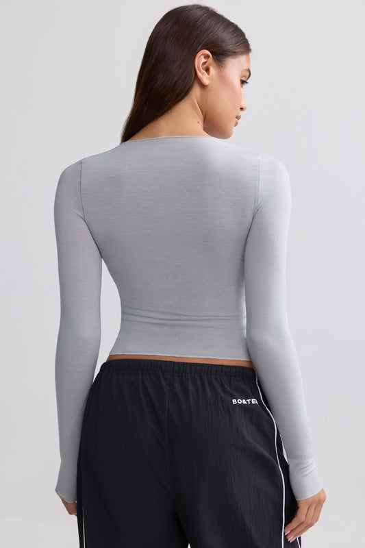 Soft Active Contrast-Trim Bandeau Top in Marl Grey