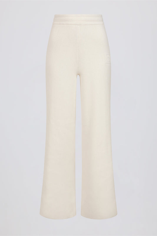 Ribbed-Knit Wide-Leg Joggers in Ivory