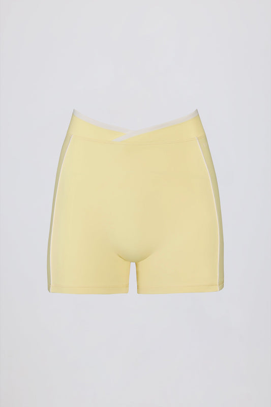 Soft Active Wrapover Contrast Mini Shorts in Soft Yellow