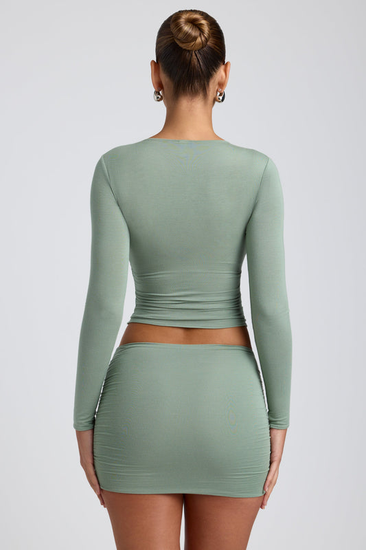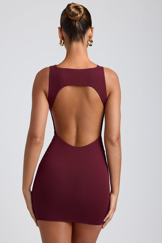 Modal Open-Back Long-Sleeve Mini Dress in Plum