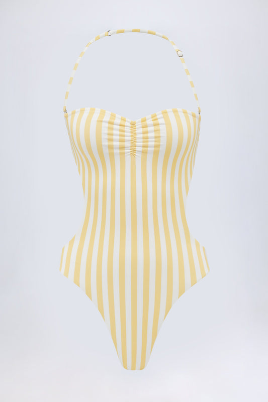 Ruched Cut-Out Swimsuit in Golden Yellow