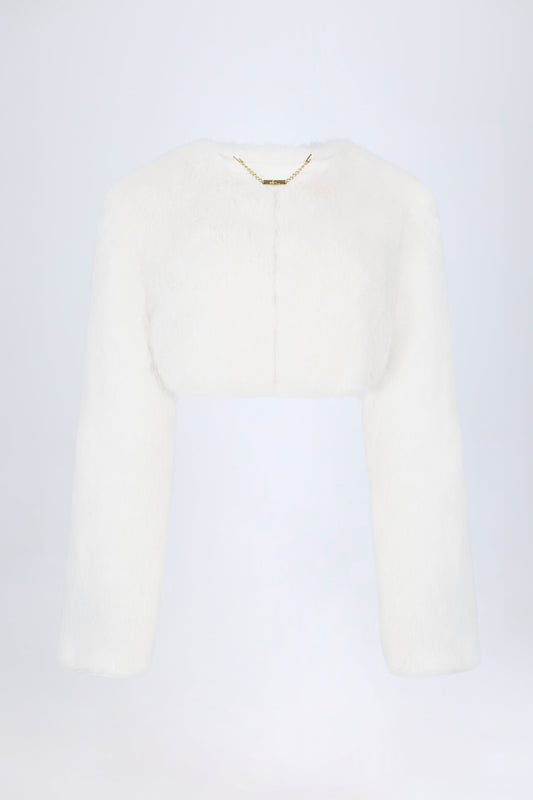 Faux Fur Cropped Bolero in White