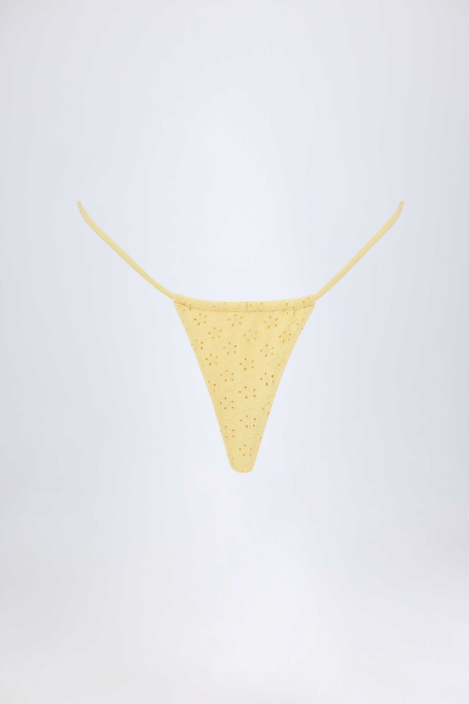 Broderie Anglaise Drawstring Bikini Bottoms in Lemon Yellow