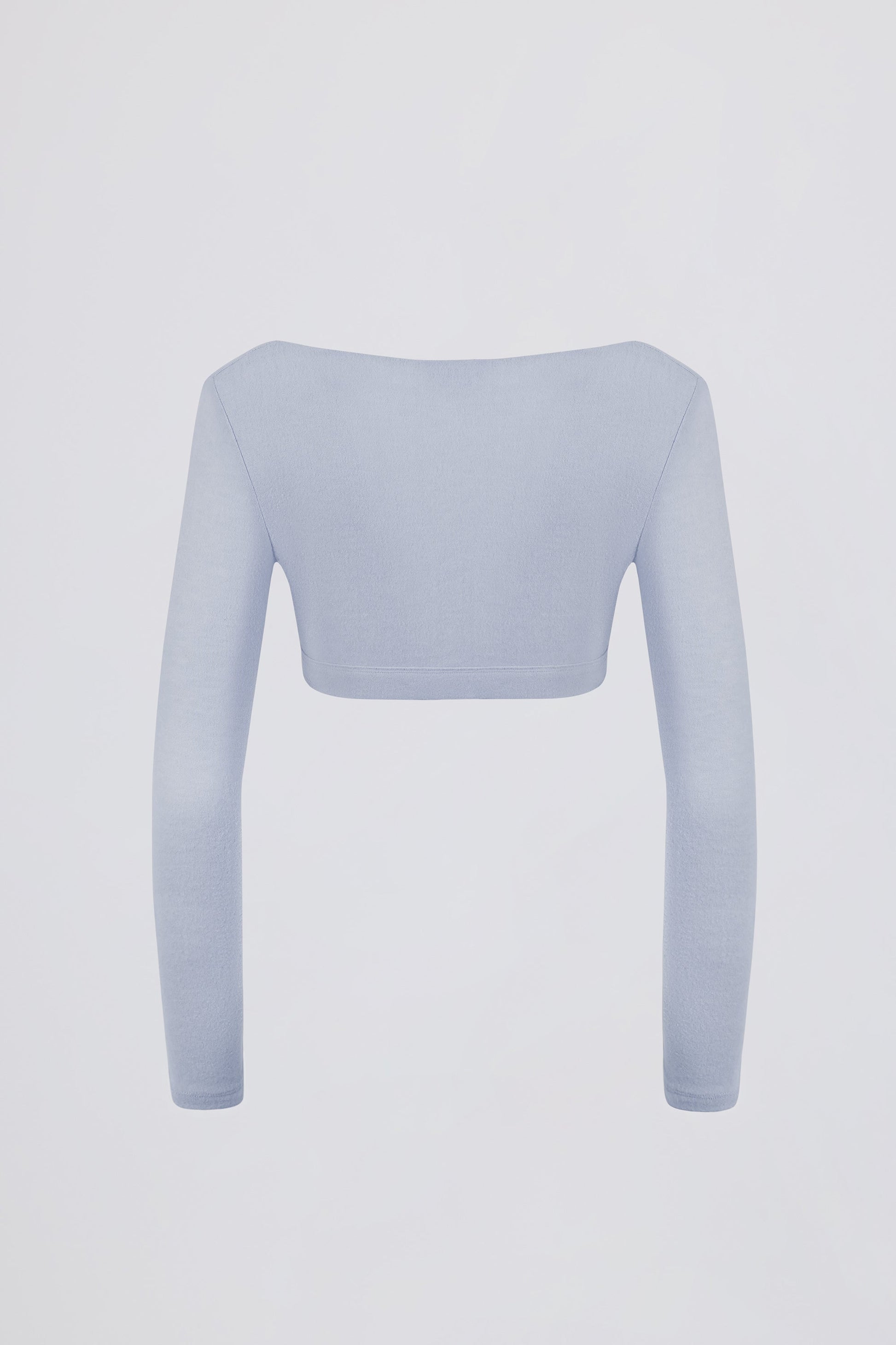 Brushed Jersey Wrap Crop Top in Soft Blue