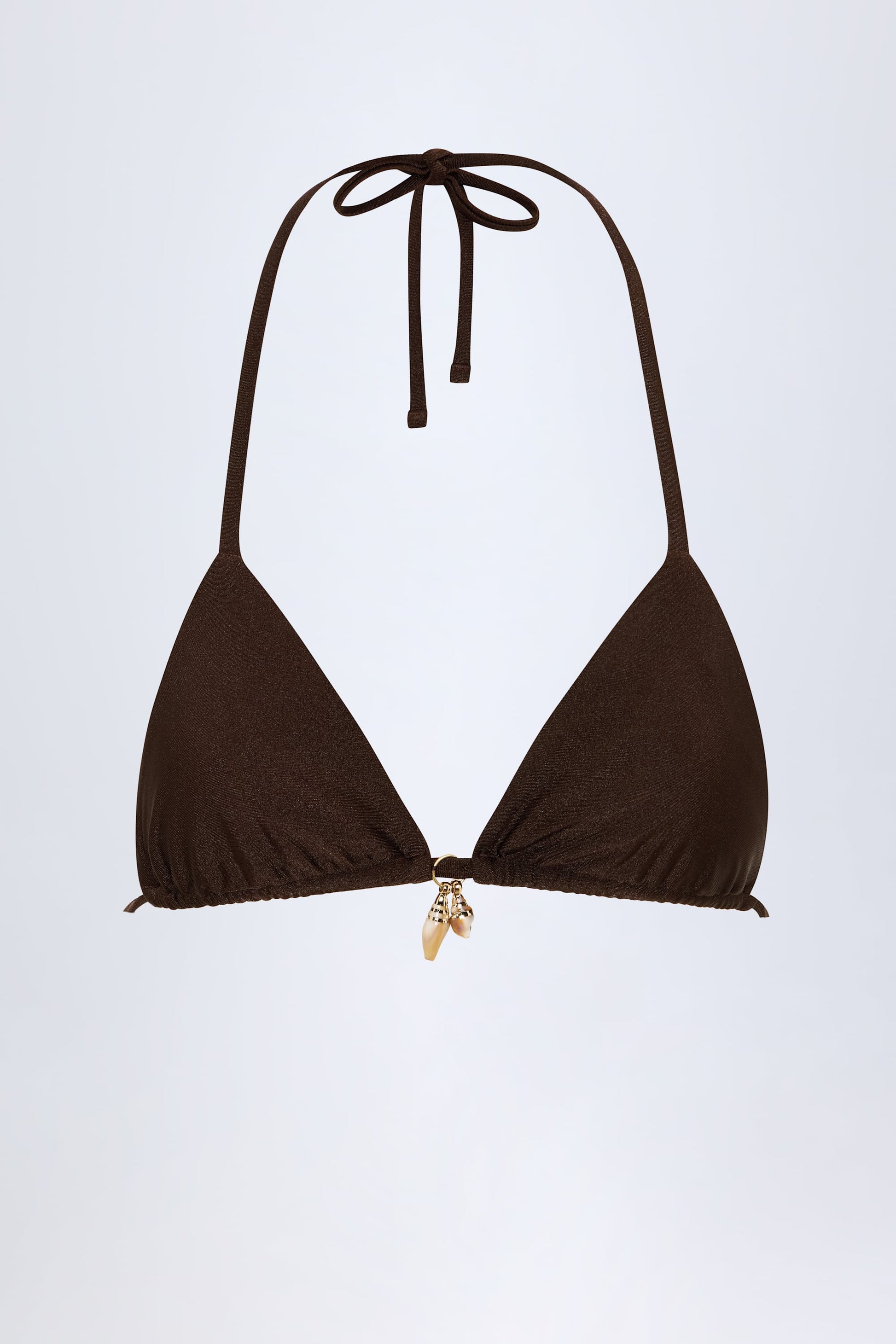 Charm-Detail Triangle Bikini Top in Dark Chocolate