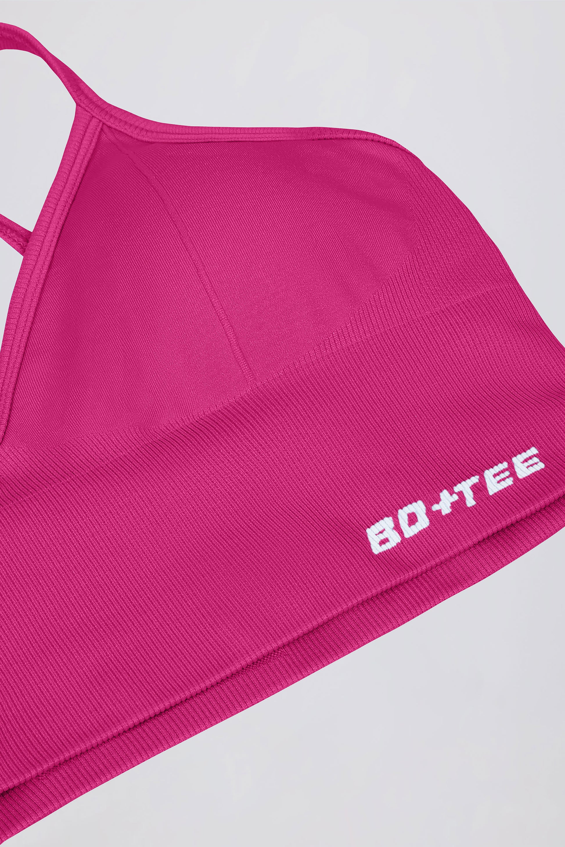 Streamlined support. Slinky soft and engineered for performance, this V-neck sports bra is crafted from our signature Define Luxe fabric with a breathable, seamless knit construction and moisture-wicking properties for enhanced comfort during any workout. It features adjustable straps for a custom fit and a supportive micro-rib underband.