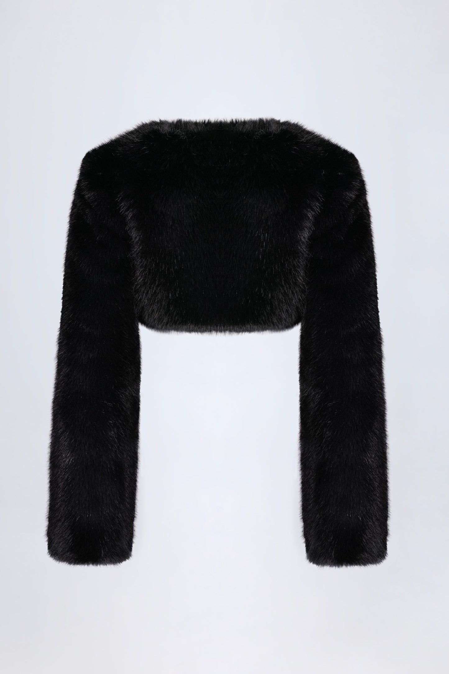 Glam layering made effortless. The Almerinda bolero is crafted from premium faux mink and cut to a cropped length for maximum impact. It features a classic round neckline, wide sleeves, and a delicate hook-and-eye front fastening for a flawless finish. Perfect for draping over your most glamorous looks.