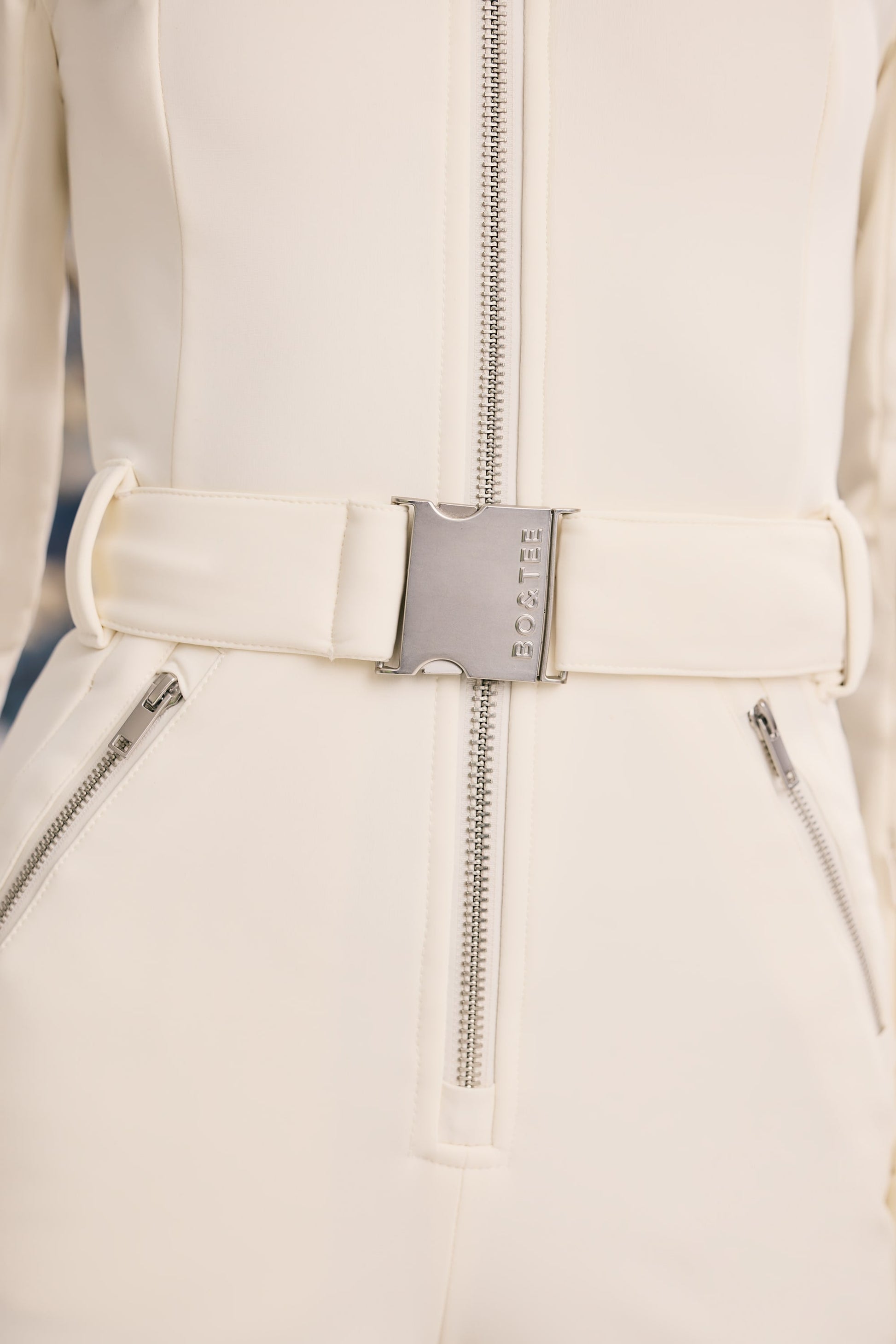 On-piste essentials. Designed to be worn over base layers from the collection, this ski suit is crafted from waterproof soft shell fabric and lined with fleece for enhanced comfort and warmth in colder climes. It’s cut to a kick-flare silhouette with functional zips for a customisable fit over ski boots and features snow gaiters to lock in warmth. It’s elevated with functional details like waterproof zipped pockets, long sleeves with thumbholes and body-contouring seams for a universally flattering fit.