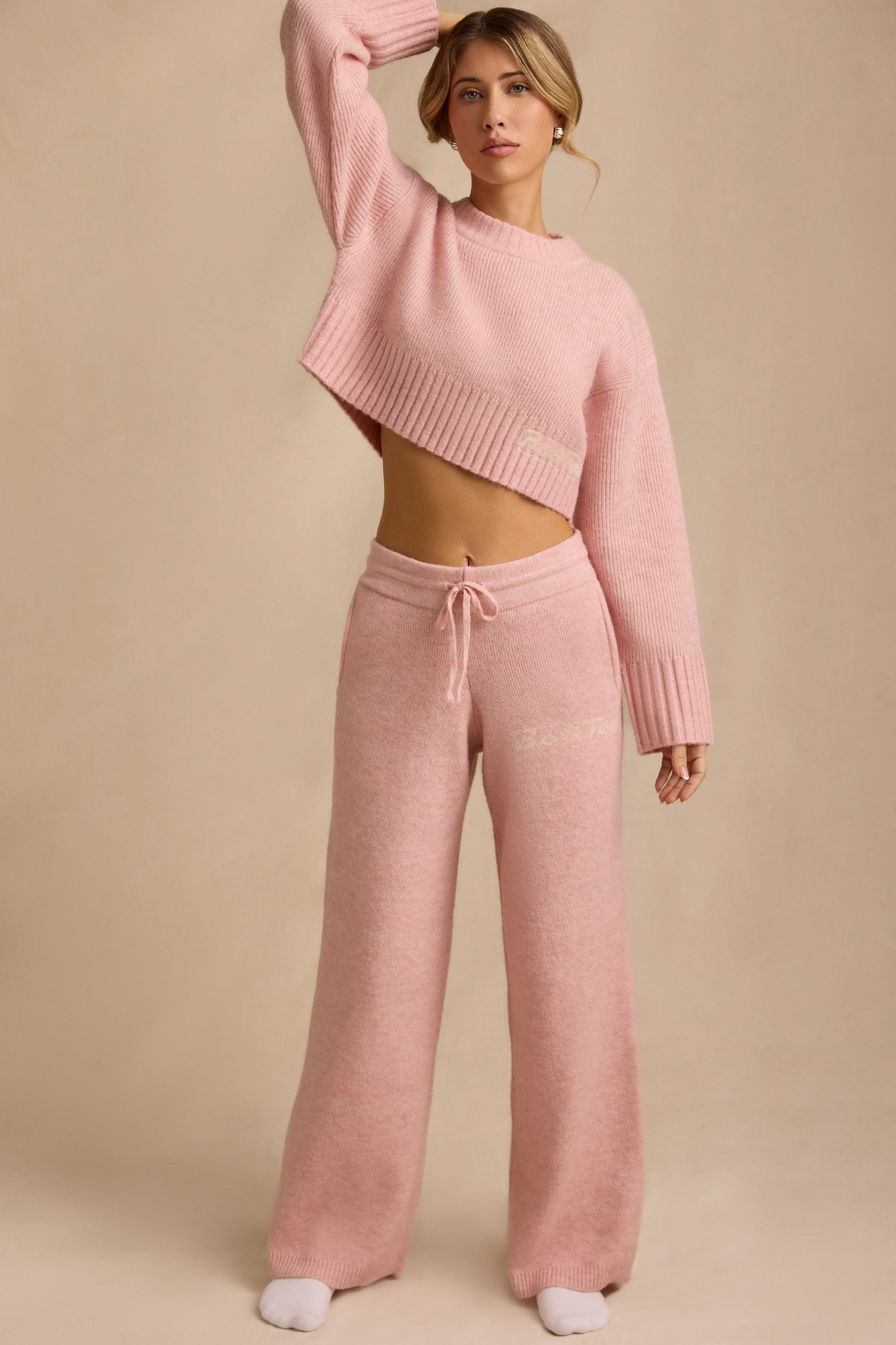 Mid-Rise Wide-Leg Joggers in Blush Pink