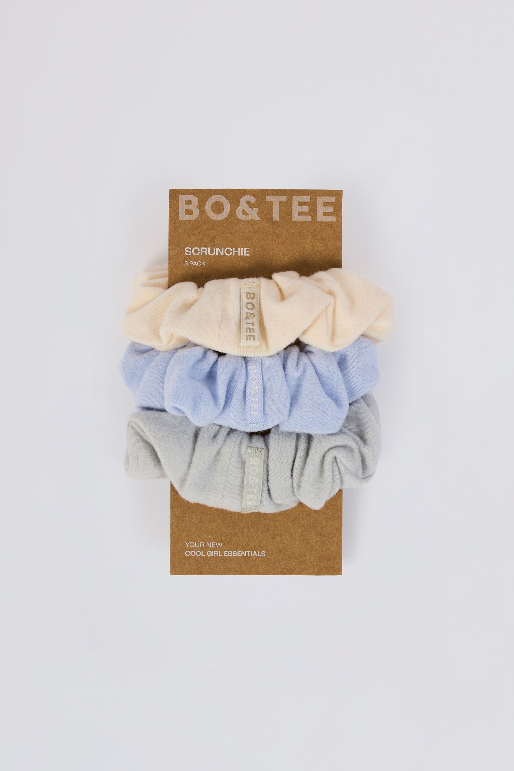 The perfect finishing touch. Elevate your rest day looks with this pack of three scrunchies, made from super soft brushed jersey in coordinating hues, to pair back perfectly with our off-duty favourites. They’re designed to an oversized shape, lightly ruched to minimise pulling when creating your everyday styles, and tagged with a signature Bo+Tee logo.