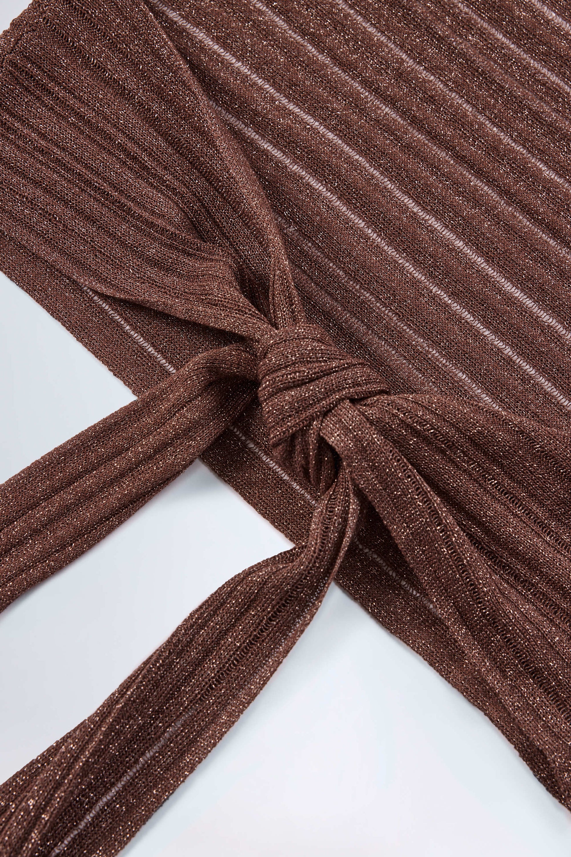Your ticket to effortless style, meet the Sol crop top. Crafted from our premium lightweight knit fabric that shimmers in the sun, it’s cut to a cropped length with a plunging cowl neckline that’s flirty, fun and feminine, and features adjustable tie fastenings at the neck and back for a custom fit.