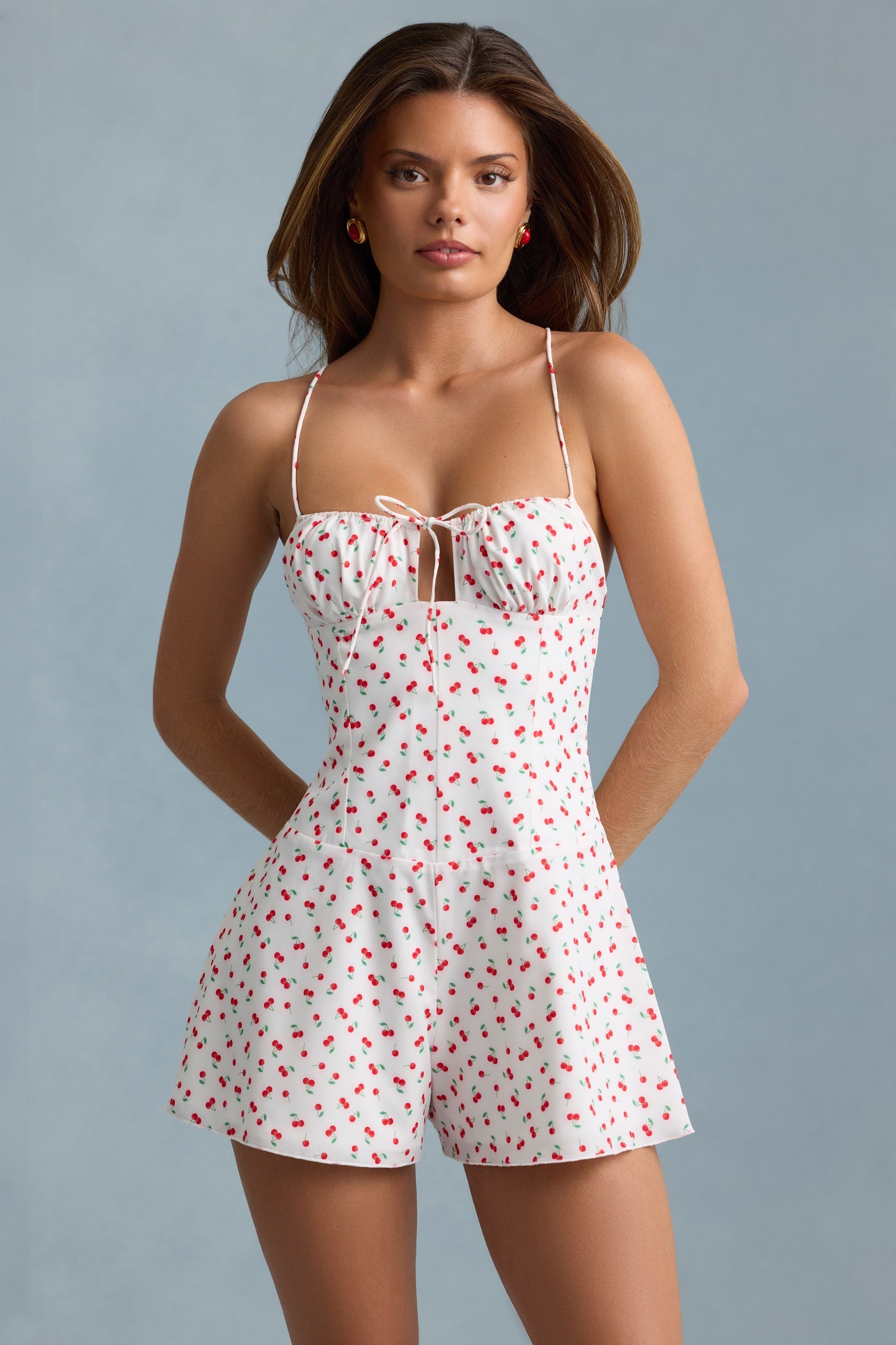 Playful ease all summer long with the Helaia playsuit, a pretty and polished style crafted from lightweight georgette. Cut to a fit-and-flare silhouette with a fitted bodice, it’s framed with a ruched bust panel and statement open back complete with adjustable crossover ties for your perfect fit.