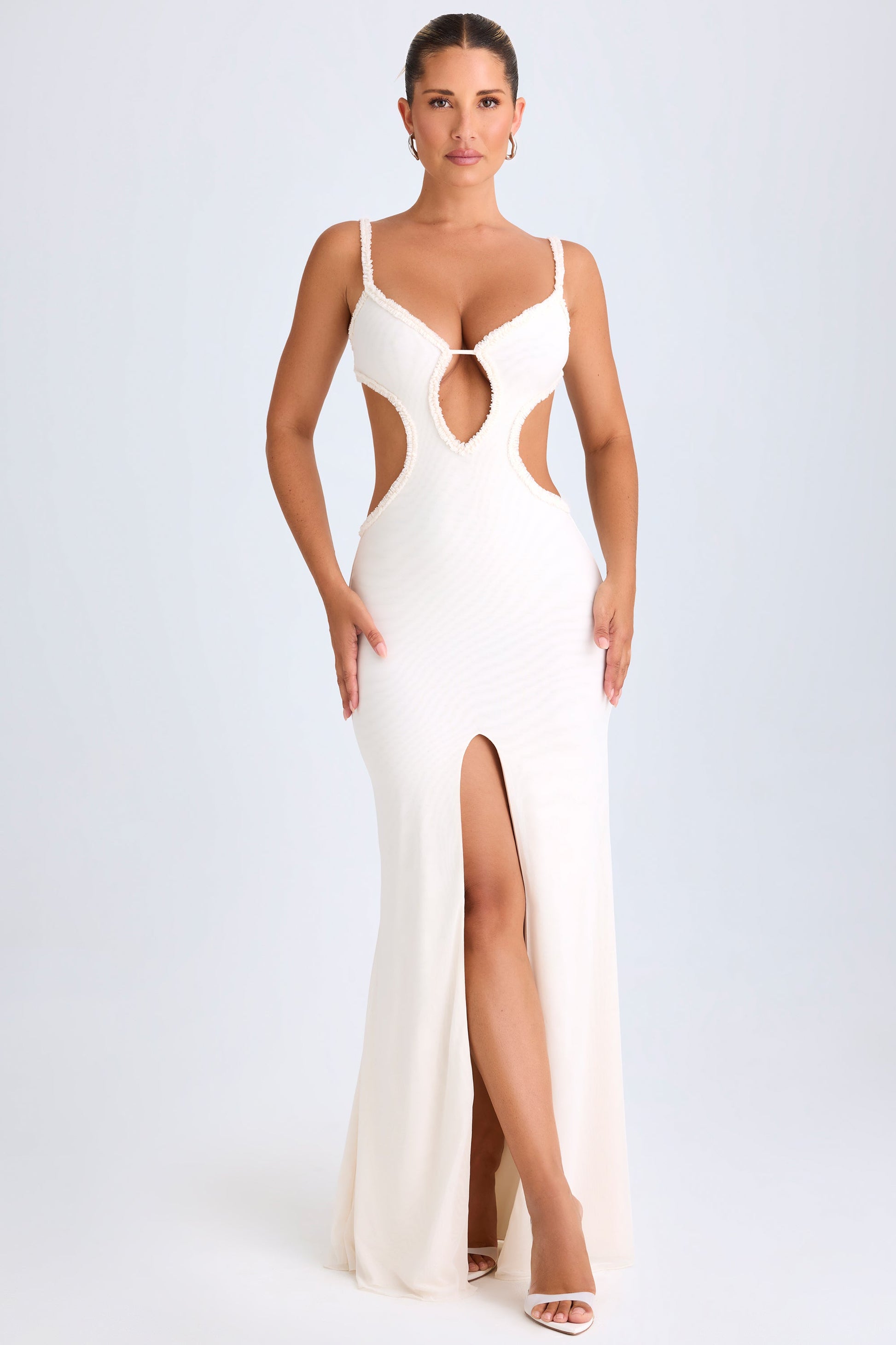 Ruffle-Appliqué Cut-Out Maxi Dress in White