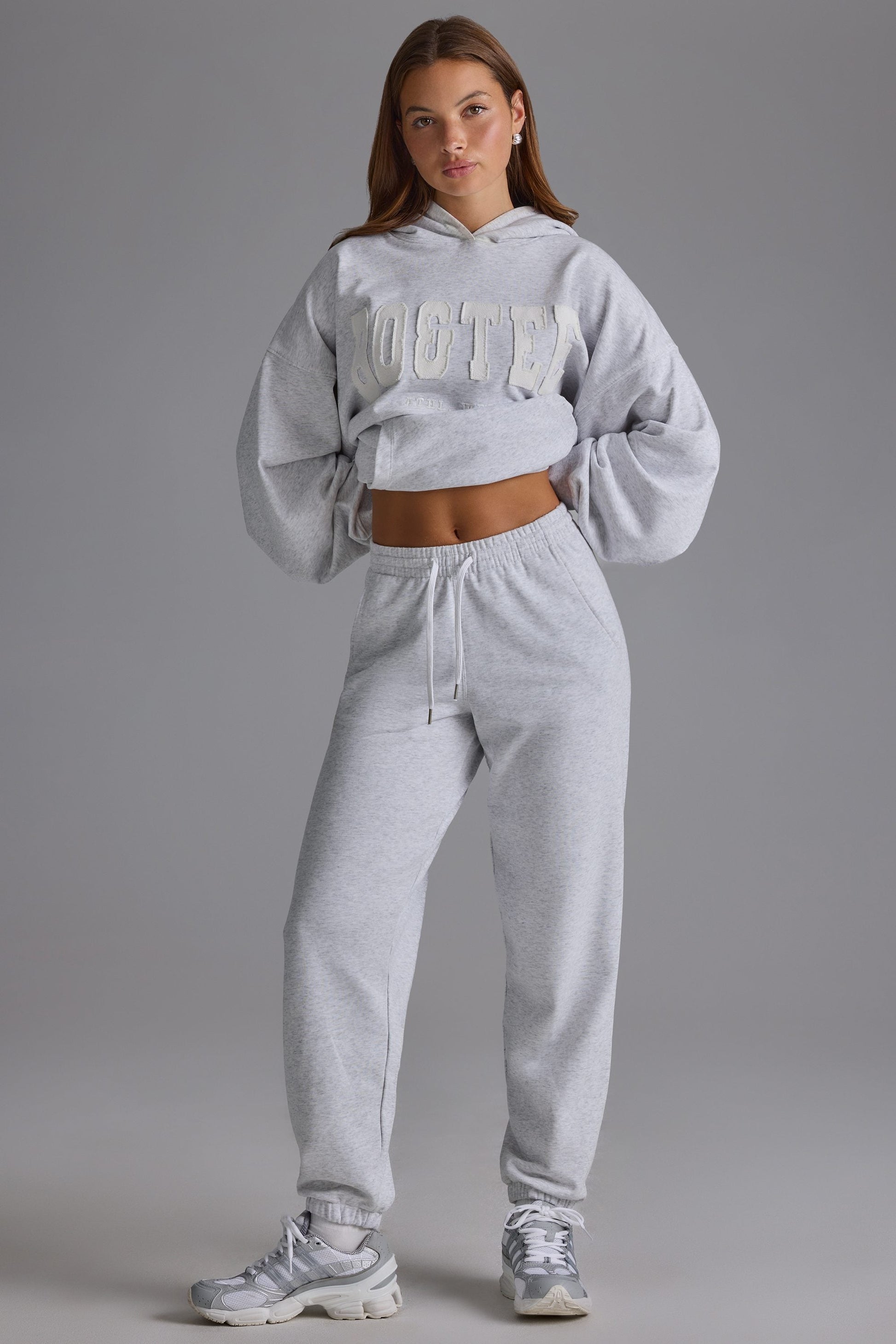 Soft Cotton Jersey Relaxed Mid-Rise Joggers in Grey Marl