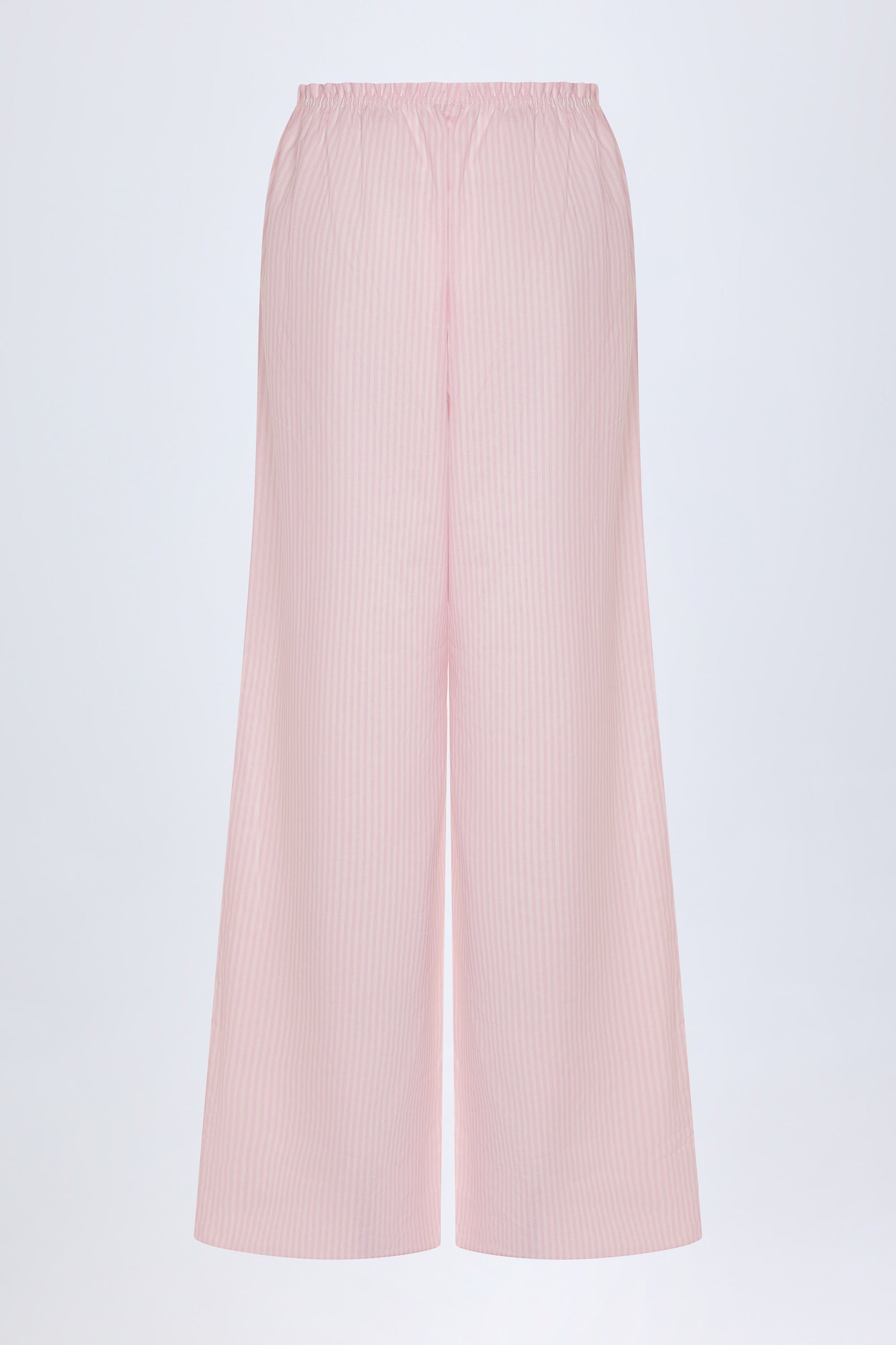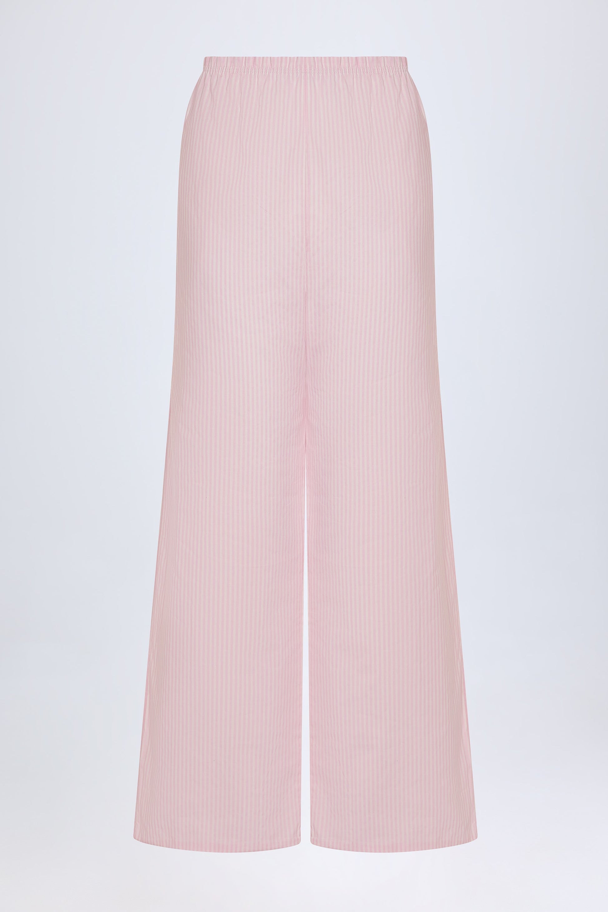 Wide-Leg Cotton-Poplin Trousers in Pink White Stripe