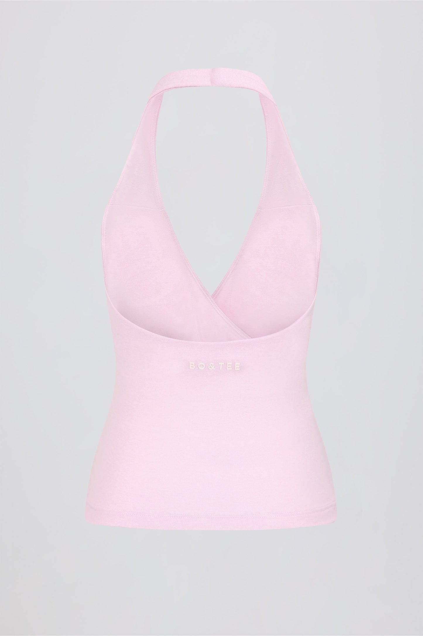 Wrap Halterneck Tank Top in Pale Pink Marl